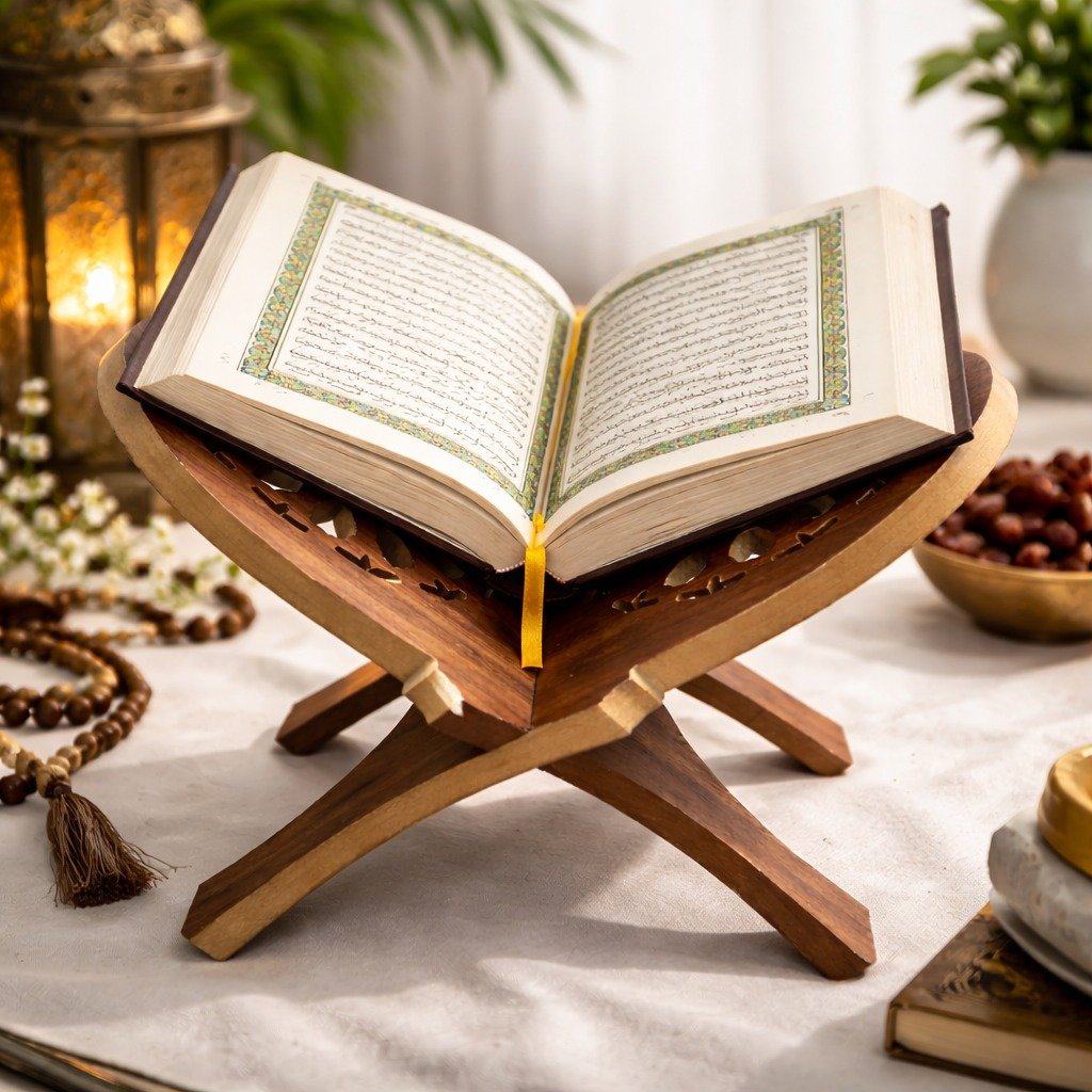 .مصممة بعناية لحمل القرآن الكريم براحة وثبات، مع نقوش دقيقة تضيف لمسة فنية راقية لأي مكان